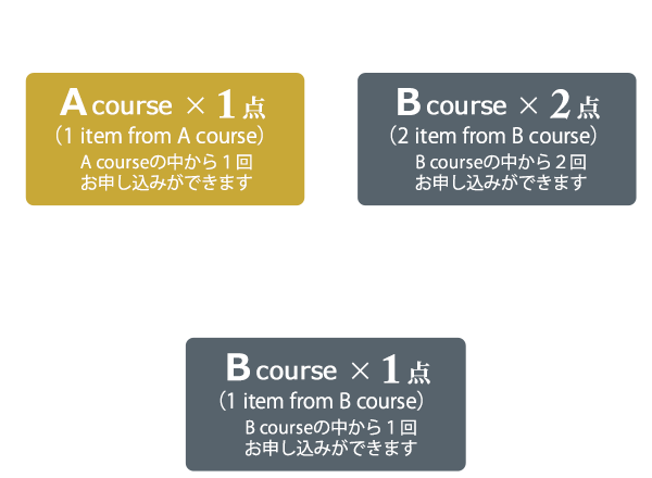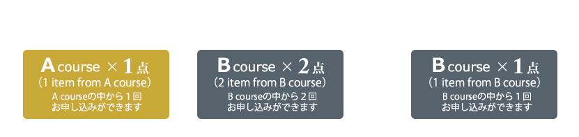 ※Aコース、Bコースを重複してのお申し込みはいただけません。We will not be able to accept an order from both A course and B course at once.