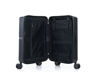 フロントを囲むアルミニウムのロゴバーと、マットな質感のシェルの繊細な直線が描く、モダンで洗練された外観に加えて、旅をより快適にするための優れた機能性も備えています。