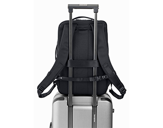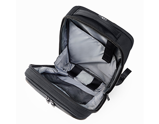 • 開口部が広くアクセスしやすいPCポケット。ショルダーストラップのクッションは2層構造で肩への負担を軽減。テフロン加工が施された1260デニールのナイロンツイルを本体素材に使用。