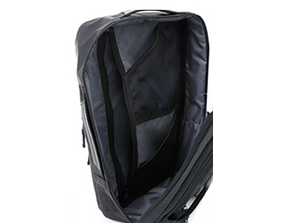 • 内装生地には抗菌加工されたリサイクルPETボトルを100%原料とする再生素材が使われています。内装・外装両方からアクセス可能なPCポケットのほか、ツールを効率的に収納できるポケットを各所に装備しています。