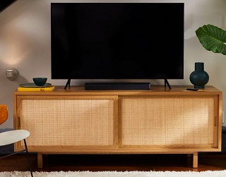 • 2つのフルレンジドライバーを搭載し、ワイドで拡がりのあるサウンドを実現。中央のツイーターがクリアなセリフを再生します。