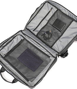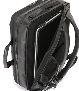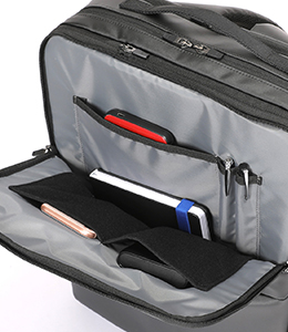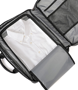 短期出張をバッグひとつでこなせる衣類収納スペースを設けたガーメントタイプ。