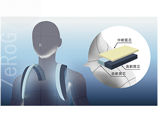 • リュックベルトに荷重分散ベルト「ZeRoG」を採用。3種の異なる芯材の働きにより、肩にフィットし荷重を分散。軽量感を生み出すことで身体への負担を軽減。