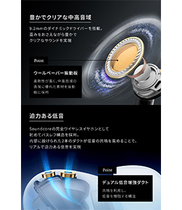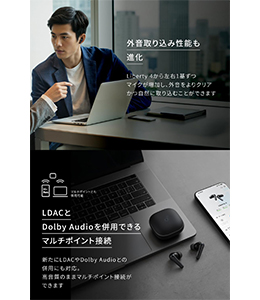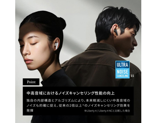 • Liberty 4のウルトラノイズキャンセリング 2.0から、ウルトラノイズキャンセリング 3.5に進化。環境に左右されず様々なシーンで圧倒的な静けさと没入感を提供します。