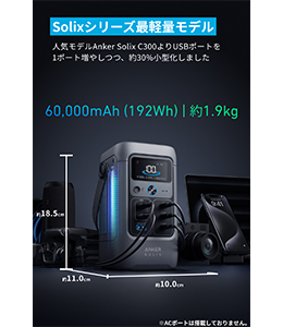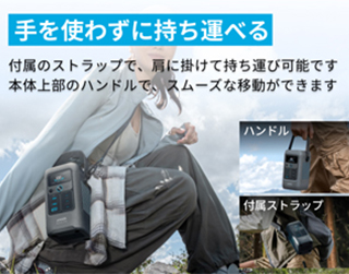 • 人気モデル「Anker Solix C300 Portable Power Station」よりUSBポートを1つ増やしつつ、約30%まで小型化。付属のストラップを使えば、両手を使うことなく肩にかけて持ち運びいただけます。