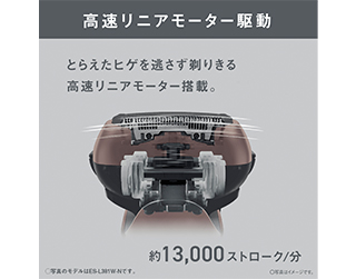 • とらえたヒゲを逃さず剃りきる「高速リニアモーター」搭載。約13,000ストローク/分の高速リニアモーターで内刃を駆動させ、とらえたヒゲを逃さず剃りきります。