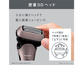 • 3Dに動くヘッドで、肌に密着シェービング。ヘッド部が「前後」「左右」「上下」に可動、頬や顔の凹凸にしっかり密着して深剃りします。