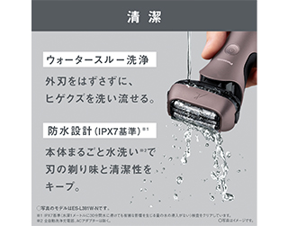 • 外刃をはずさずに、ヒゲクズを簡単に洗い流せる「ウォータースルー洗浄」を搭載しています。