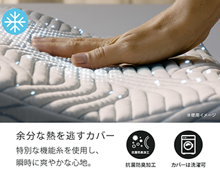 • 革新的なスマートクールテクノロジーカバーが余分な熱を逃し、瞬時に爽やかな使い心地をもたらします。仰向けや横向きの寝姿勢におすすめのオリジナルスマートクールピローは波型の独特な形状で、それぞれの体型にあわせて最適にサポートします。一人ひとりのニーズに合わせ、真の安らかな眠りをお届けします。