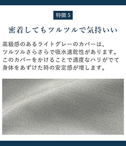 カバーはツルツルさらさらで、吸水速乾性のある生地。カバーは取り外して洗濯機で洗えます。